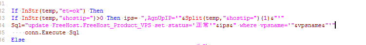 Sql=”update FreeHost.FreeHost_Product_VPS set status=’正常'”&ips&” where vpsname='”&vpsname&”‘”